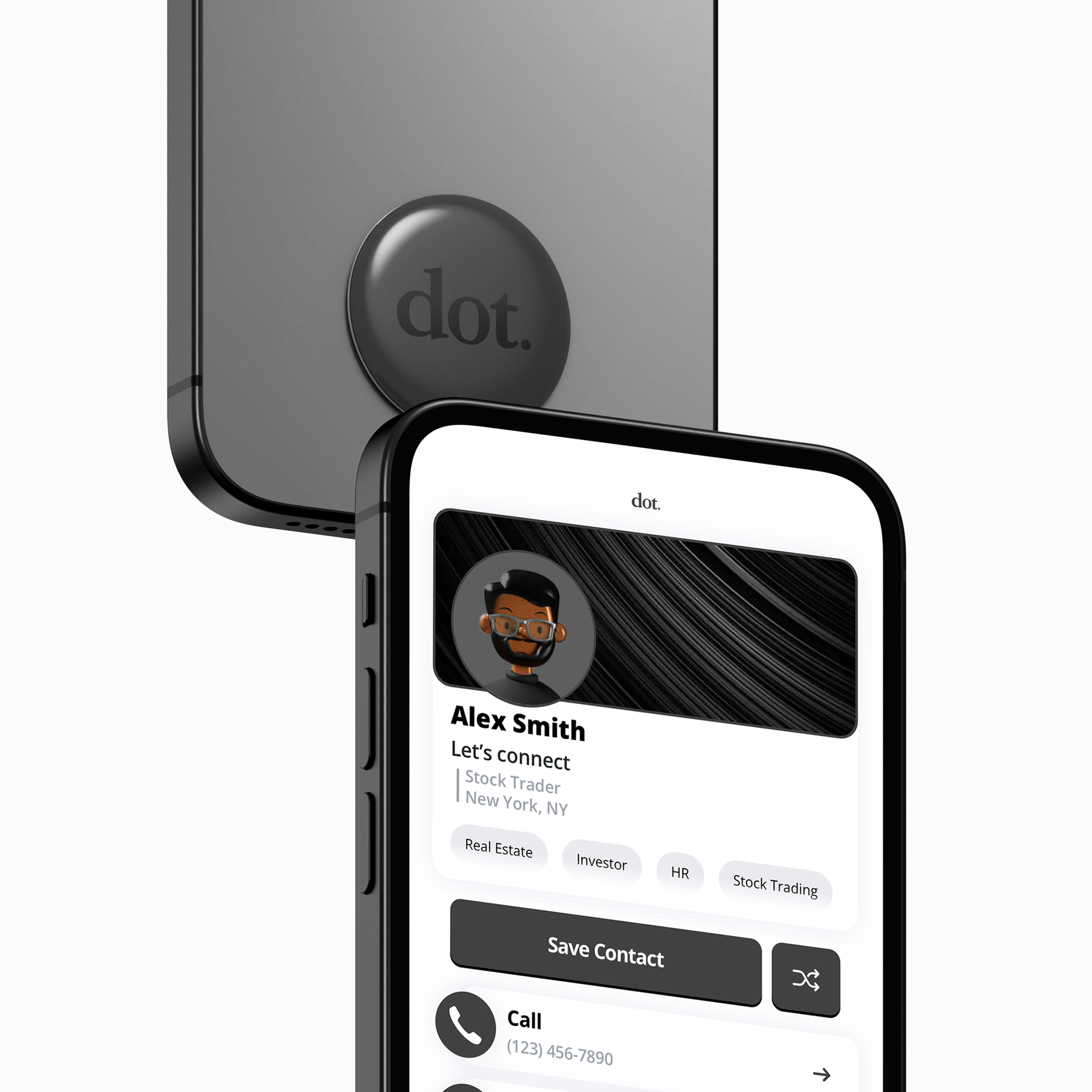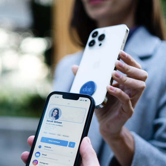 With a single tap you'll be able to transfer your dot.Profile and begin connecting with style.